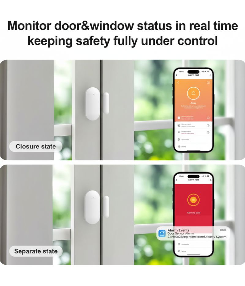 - Conectividad dual: Utiliza Wi-Fi (2,4 GHz) y es compatible con GSM/3G/4G insertando una tarjeta SIM, asegurando que recibirás alertas incluso sin Wi-Fi.
