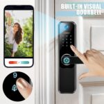 - El paquete incluye: recibirás 1 cerradura inteligente 3 en 1, 5 tarjetas de acceso, 2 llaves, 1 manual de instrucciones (idioma español no garantizado), 1 video de operación, 1 destornillador; no solo admite 4 métodos de desbloqueo: huella digital, contraseña, llave y tarjeta de control de acceso, y también se puede controlar de forma remota a través de la aplicación, ya no te preocupes por estar bloqueado, revolucionarás la seguridad del hogar; cuando llegue un visitante, simplemente presiona la llave del timbre. en el teclado para activar comió la cámara y solicite el desbloqueo remoto