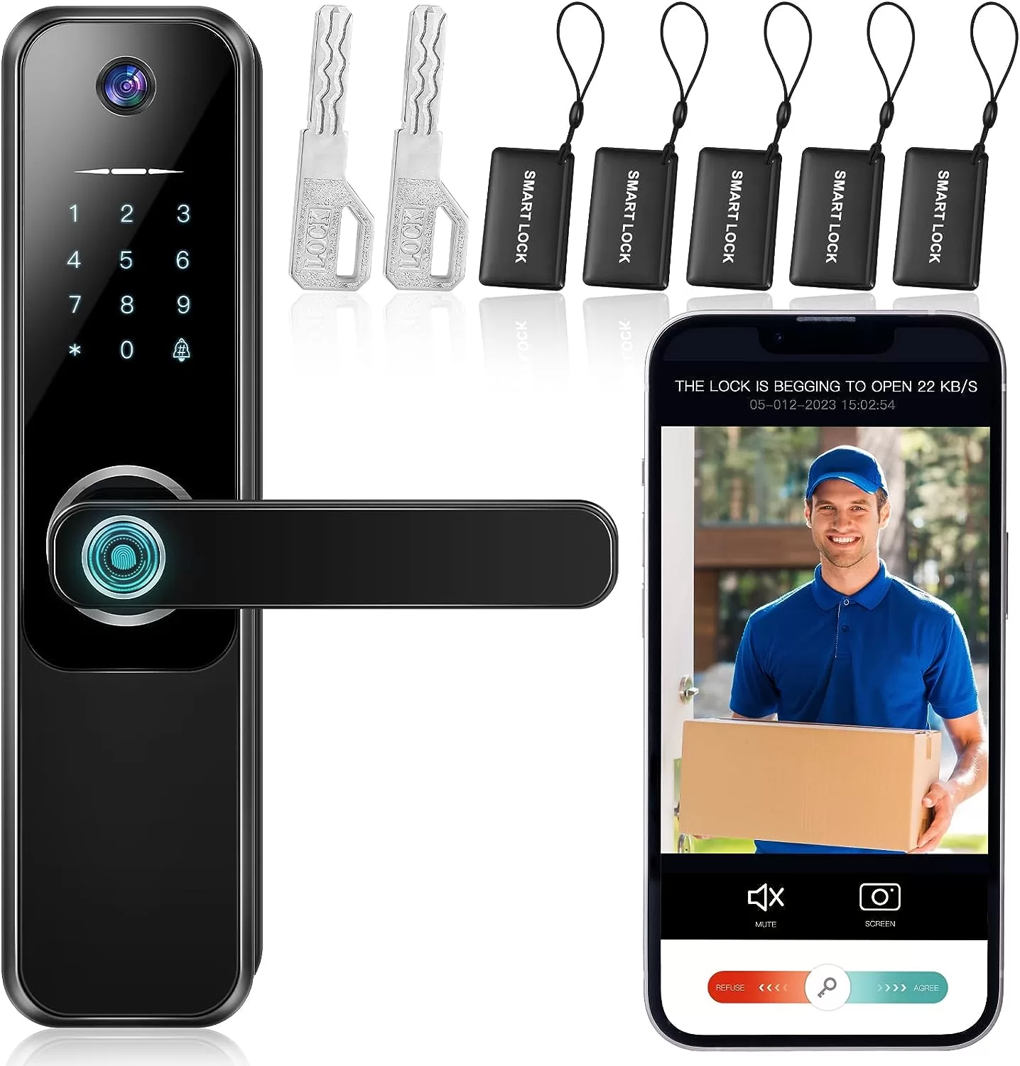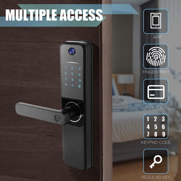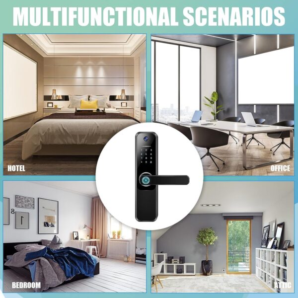 - El paquete incluye: recibirás 1 cerradura inteligente 3 en 1, 5 tarjetas de acceso, 2 llaves, 1 manual de instrucciones (idioma español no garantizado), 1 video de operación, 1 destornillador; no solo admite 4 métodos de desbloqueo: huella digital, contraseña, llave y tarjeta de control de acceso, y también se puede controlar de forma remota a través de la aplicación, ya no te preocupes por estar bloqueado, revolucionarás la seguridad del hogar; cuando llegue un visitante, simplemente presiona la llave del timbre. en el teclado para activar comió la cámara y solicite el desbloqueo remoto