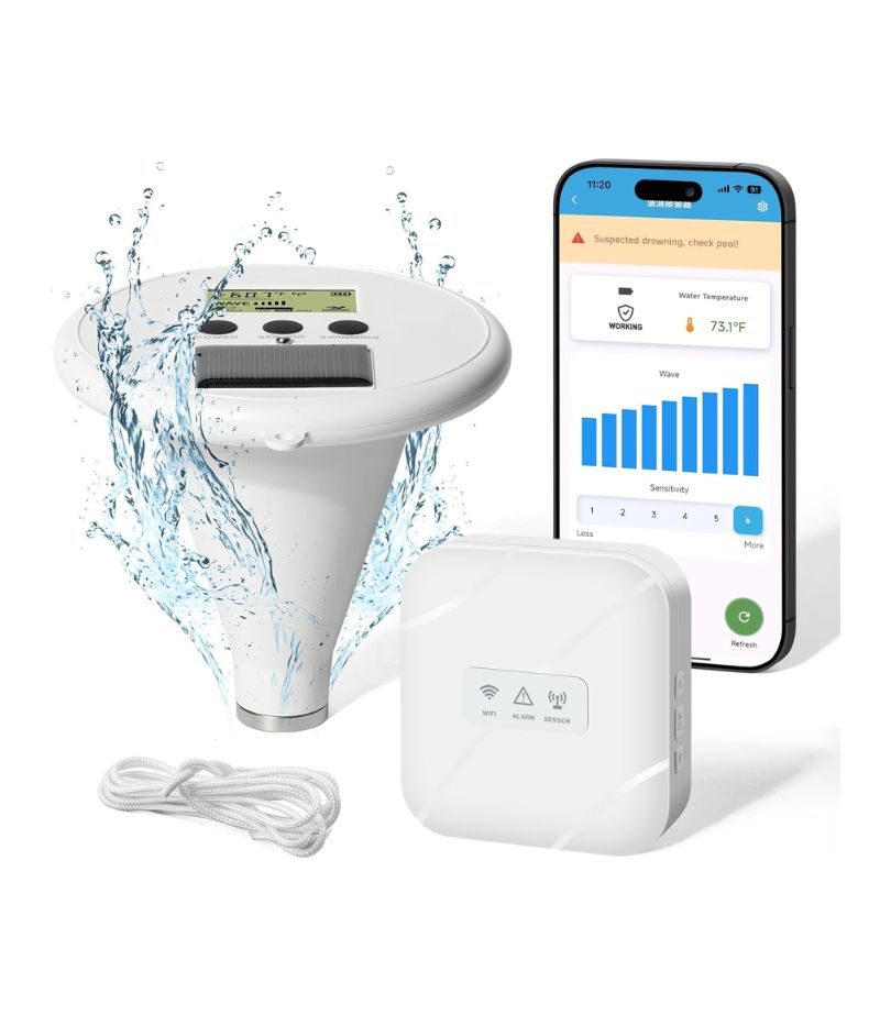 - Protección 24/7: La alarma de piscina te notifica de inmediato ante cualquier movimiento inesperado, garantizando la seguridad de niños y mascotas, incluso cuando no estás mirando.