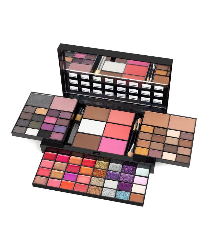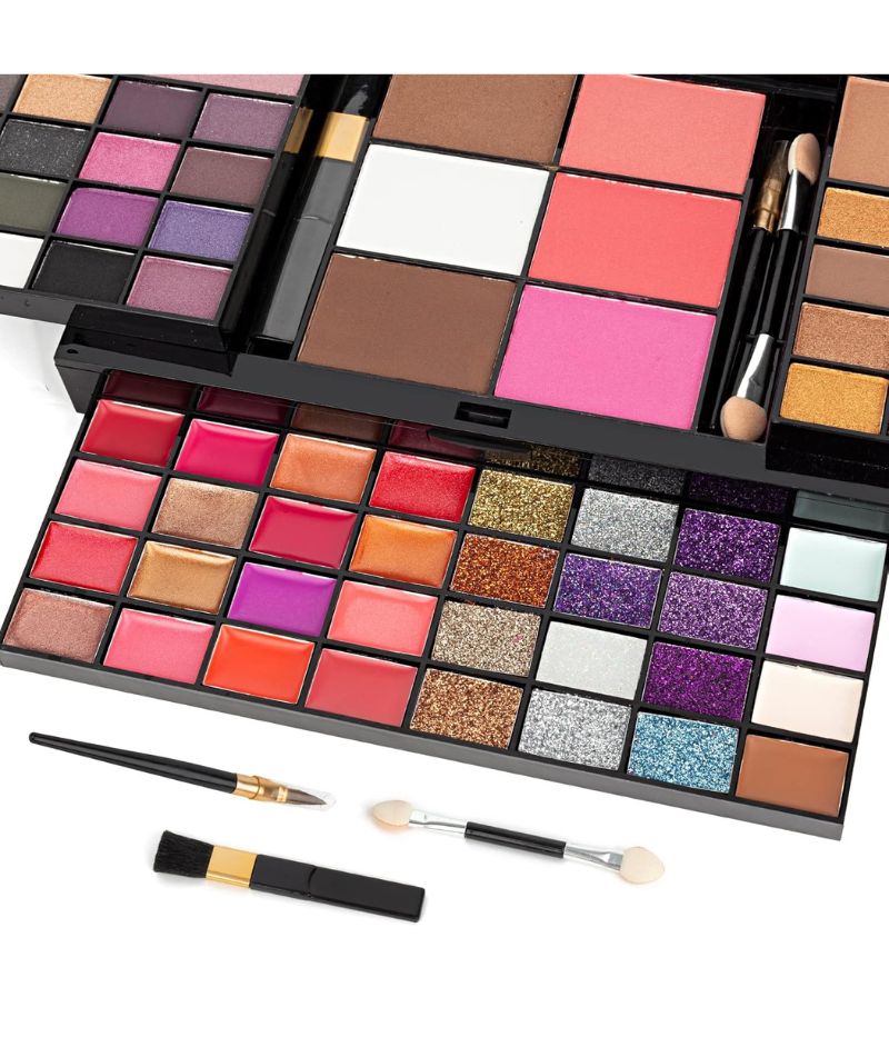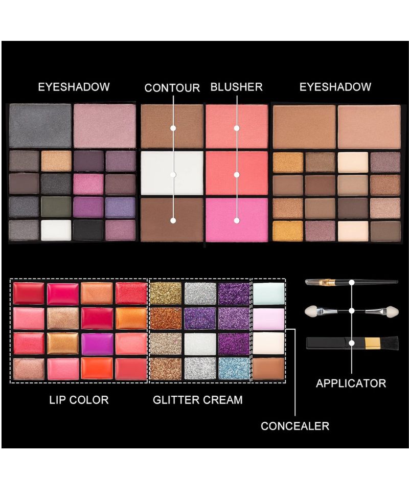 Este kit de maquillaje multiusos, ideal tanto para profesionales como para principiantes , contiene más de 74 colores (sombras, labiales, correctores y rubores) para lograr cualquier look de cara completa. Su textura es suave, cremosa y aterciopelada , lo que facilita la aplicación y la mezcla, proporcionando un camuflaje total y un efecto de larga duración que perdura todo el día.