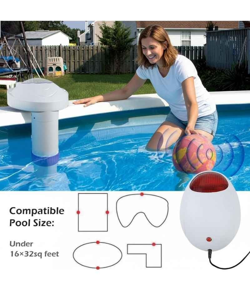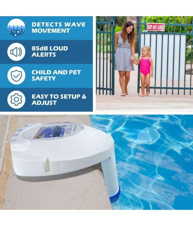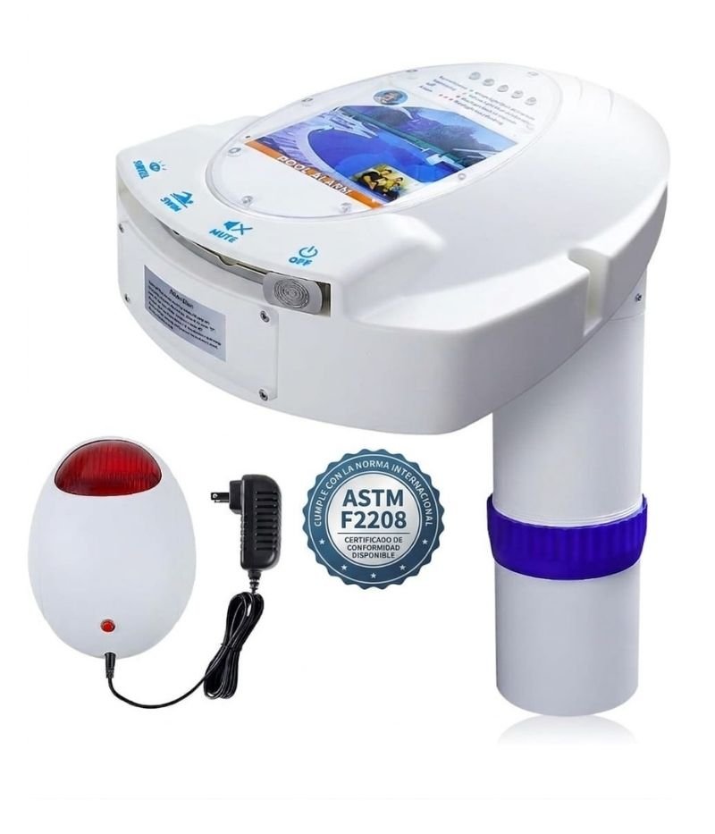 - Alerta de alto volumen: Emite una alarma fuerte y pulsante para alertar inmediatamente si alguien cae en la piscina. La unidad remota tiene una alerta de 85 dB.