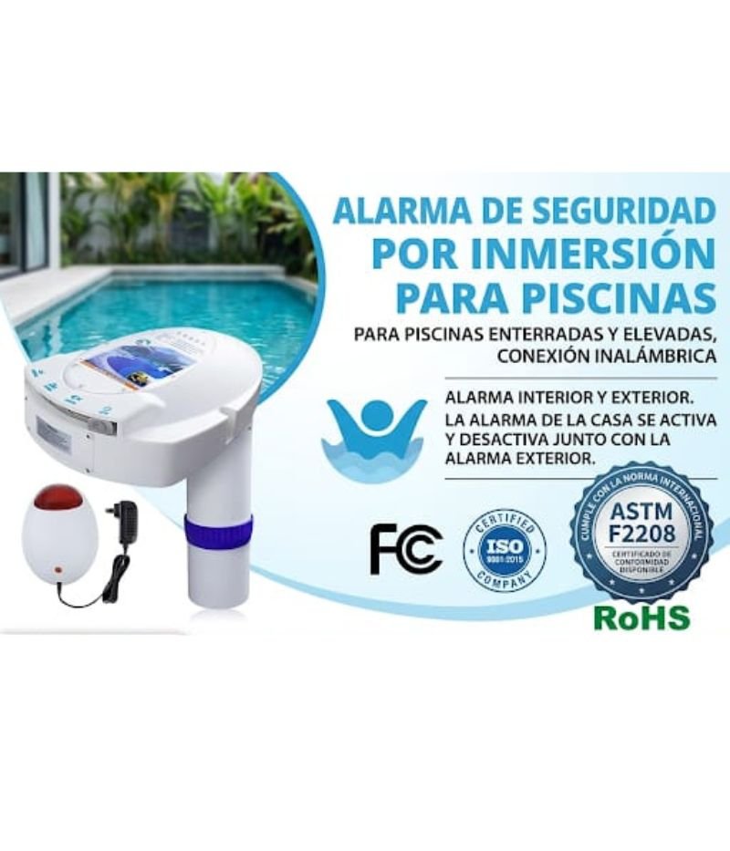 - Respuesta rápida: La alarma suena entre 3 y 13 segundos en piscinas de $16 times 32$ pies cuadrados (aproximadamente $4.9 times 9.8$ metros cuadrados).