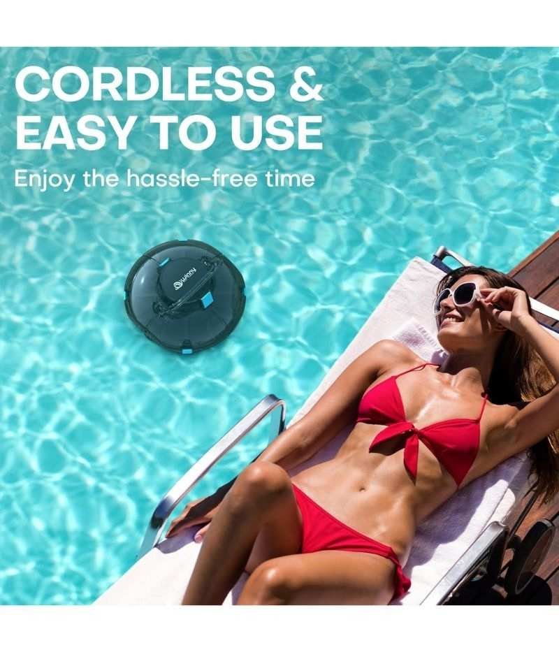 Inalámbrico y sin complicaciones: El robot funciona de manera inalámbrica con una batería recargable, facilitando la navegación por la piscina sin riesgos de descarga eléctrica. Se carga en 4 horas.