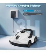 Carga rápida y largo tiempo de funcionamiento: la aspiradora de piscina sobre el suelo viene con una batería de 5200 mAh que se carga completamente en solo 3 horas y proporciona potencia de limpieza. Perfecto para piscinas sobre el suelo de hasta 1076 pies cuadrados. ATENCIÓN: Este limpiador robótico de piscinas es adecuado para piscinas de fondo plano con pendientes inferiores a 10 grados y sin escalones.
