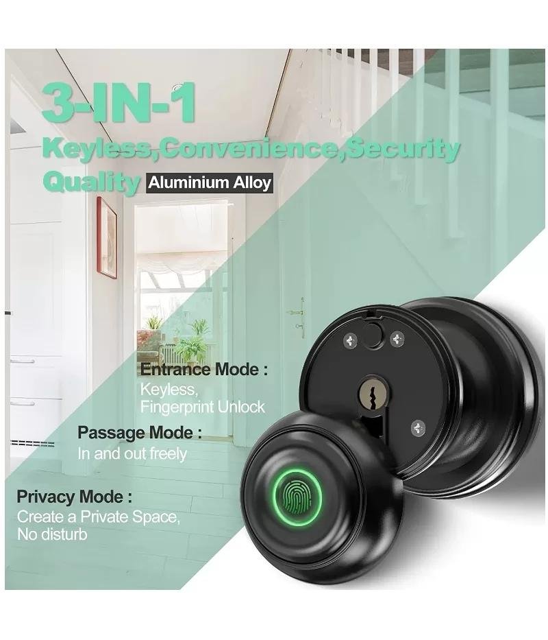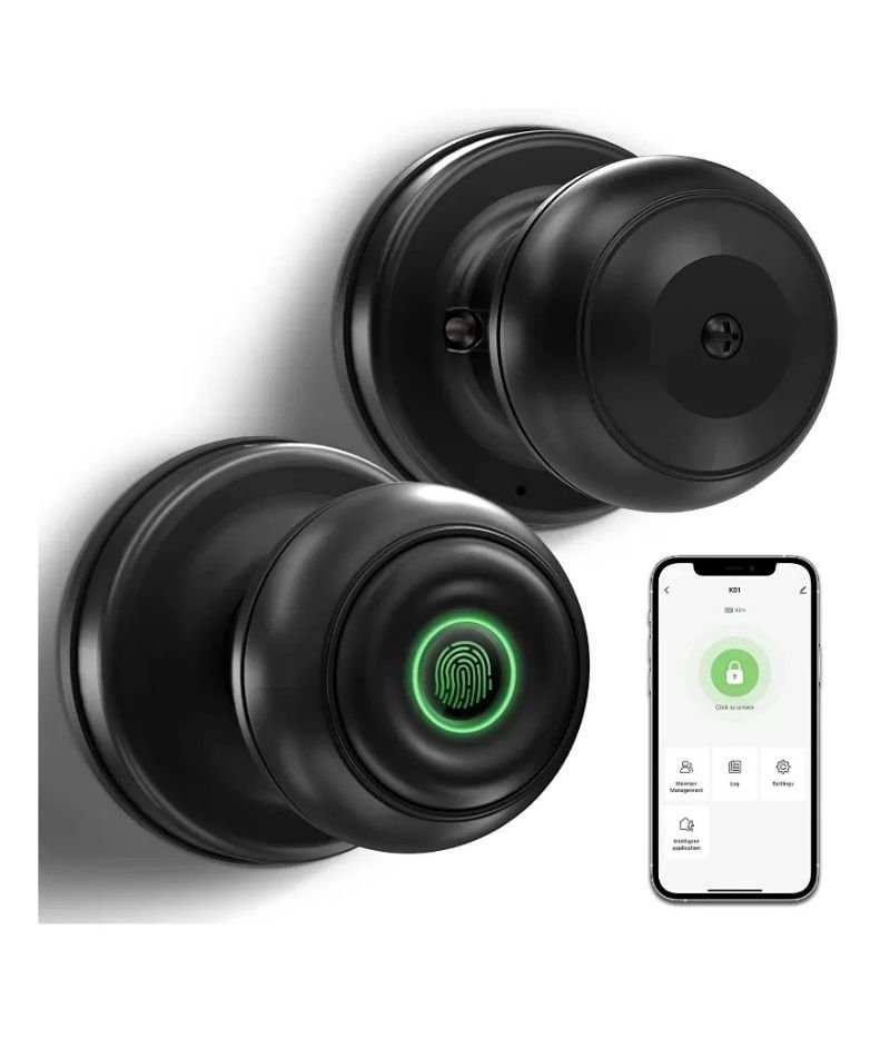 Esta perilla con huella dactilar está diseñada para ofrecer una experiencia de acceso moderna y segura en hogares u oficinas, destacando por su rapidez y resistencia.