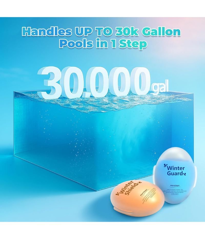 Este kit de cierre de invierno utiliza un proceso sencillo (solo dos cápsulas) para garantizar agua cristalina durante toda la temporada baja. Al hacerlo, reduzca el mantenimiento de reapertura en primavera hasta en un 80% , evitando problemas de agua verde o turbia. Además, su fórmula es segura para la familia y las mascotas, y es compatible con cualquier tipo de piscina (sobre el suelo o enterrada) de hasta 30.000 galones.