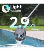 Esta aspiradora de piscina para piscinas elevadas ofrece una limpieza eficiente gracias a sus dos motores de alto rendimiento y su potente succión, eliminando fácilmente suciedad, hojas y residuos. Su batería de alto rendimiento proporciona de 75 a 80 minutos de limpieza continua para piscinas de hasta 645 pies cuadrados, con una carga rápida de solo 2.5 horas. Se enciende con un solo clic y es muy fácil de usar. Cuando la batería está baja, se conecta automáticamente al lado de la piscina, facilitando su recuperación, y su peso ligero de 6.4 libras la hace fácil de levantar. Cuenta con una gran cesta de filtro de 2.5L para recoger escombros, lo que reduce la frecuencia de vaciado. Además, incluye una garantía de un año y soporte al cliente 24/7.