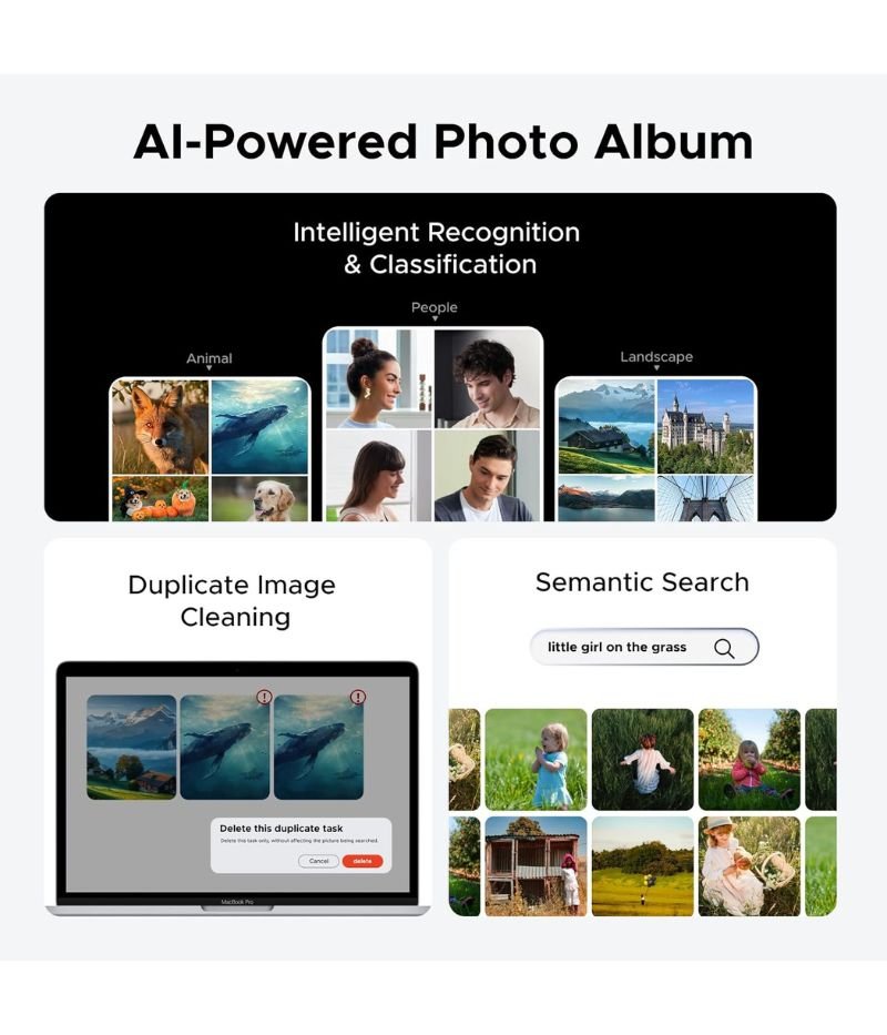 Gestión con IA: El álbum de fotos utiliza inteligencia artificial para reconocer caras, escenas y objetos, además de eliminar automáticamente archivos duplicados.