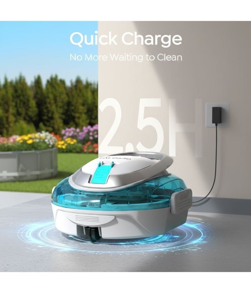 Autonomía Eficiente: Ofrece hasta 90 minutos de limpieza inalámbrica constante, ideal para piscinas de hasta 80 m² (aprox. 861 pies cuadrados).